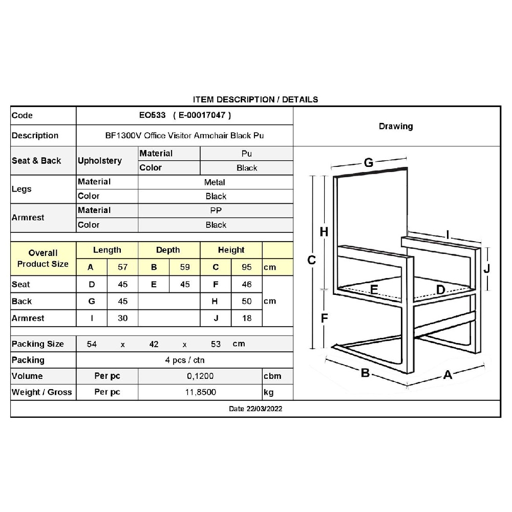 ΕΟ533 BF1300V Πολυθρόνα Επισκέπτη Μαύρο<br>