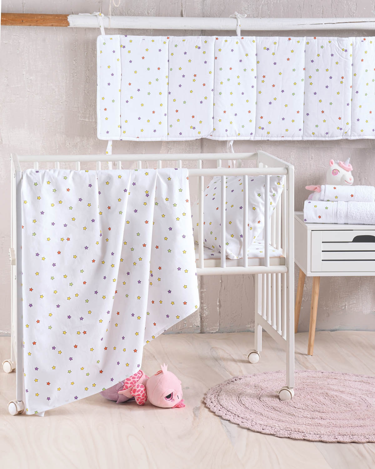 Blaze σετ βρεφικά βαμβακερά σεντόνια με αστεράκια και μαξιλαροθήκη σε λευκή απόχρωση σετ τριών τεμαχίων 120x160 εκ
