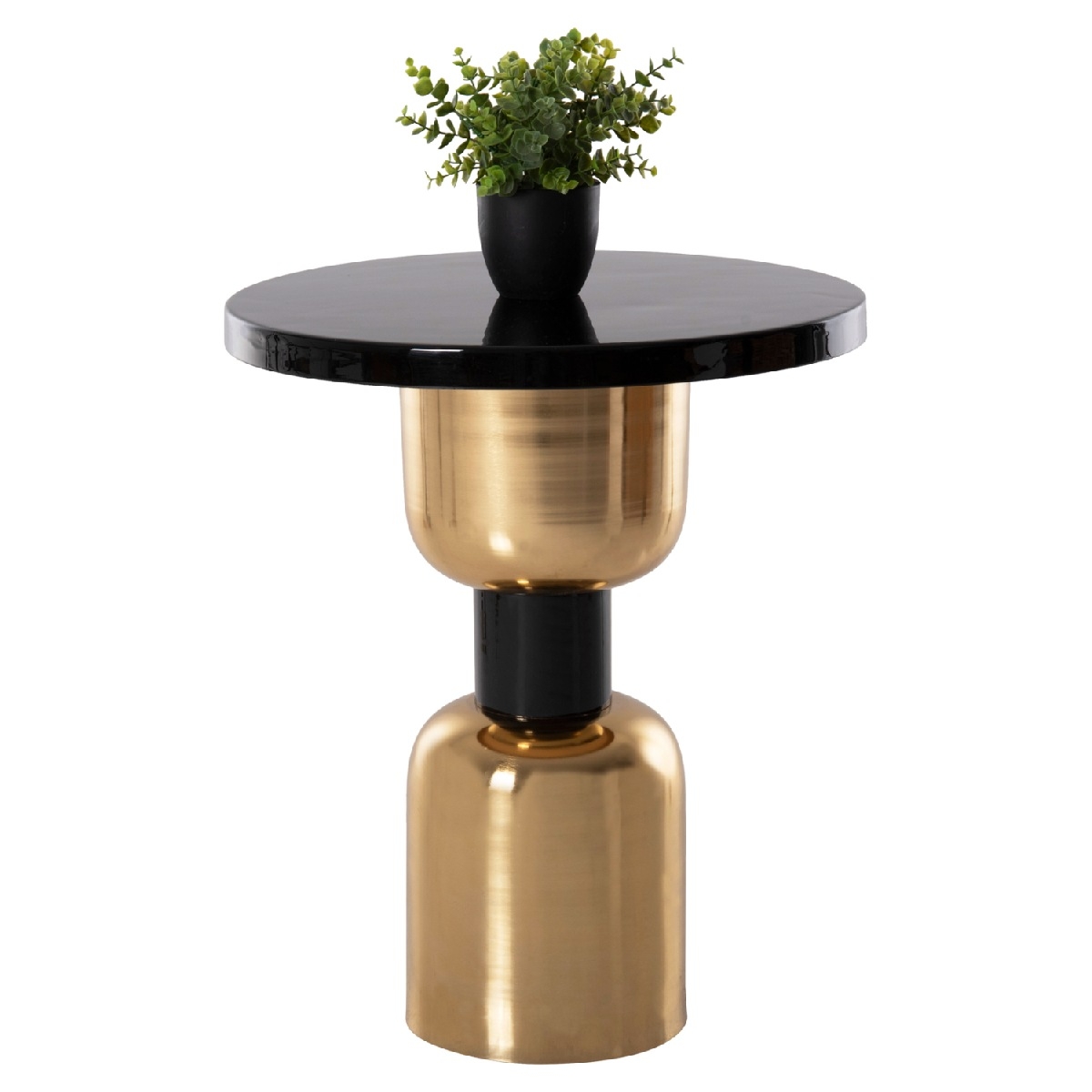 Το βοηθητικό τραπεζάκι SURAT για το σαλόνι είναι μια από τις νέες προσθήκες στην γκάμα μας. Πρόκειται για ένα μεταλλικό τραπεζάκι στρογγυλό με περίτεχνη κυλινδρική βάση και λαιμό. Το τραπέζι είναι σε όμορφη διχρωμία ΜΑΥΡΟΥ-ΧΡΥΣΟΥ που δίνει μια αίσθηση καθαρότητας στον χώρο. Ιδανικό τόσο για το σπίτι, όσο και για επαγγελματικούς χώρους. <br />