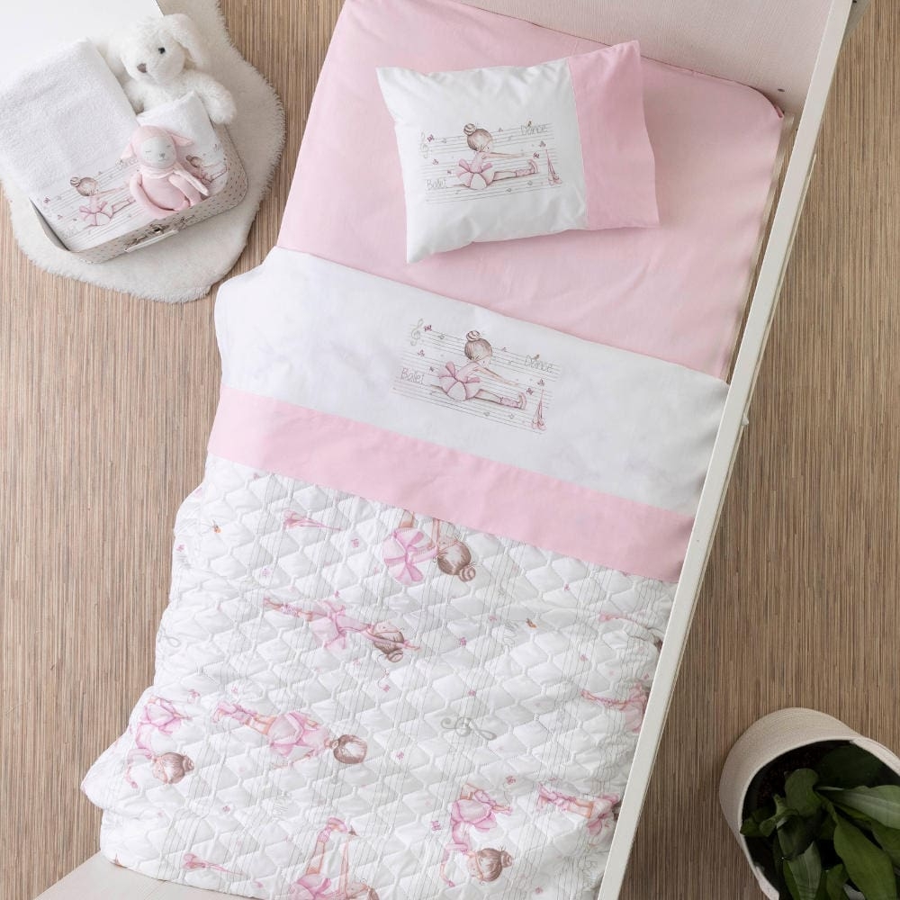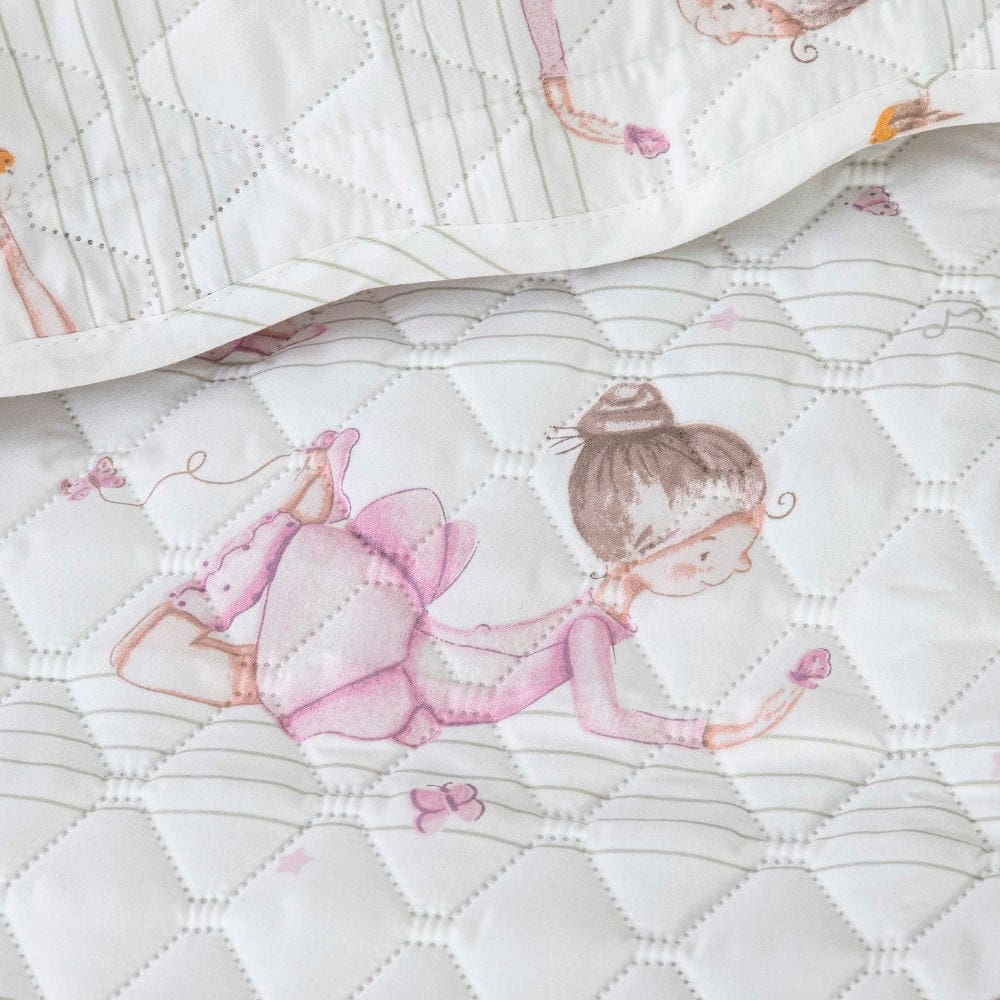 <p>Kουβερλί κούνιας από ύφασμα microfiber,100% πολυέστερ, εμπριμέ, με γραμμικό μοτίβο και παιδικό σχέδιο με μπαλαρίνες.</p>