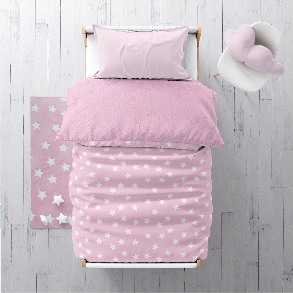 <p>Κουβερτοπάπλωμα μονό από ύφασμα φλάνελ,100% πολυέστερ, εμπριμέ, με φωσφορίζοντα στο σκοτάδι αστεράκια και επένδυση προβατάκι sherpa.Διατίθεται σε 2 χρώματα (χωρίς μαξιλαροθήκες).</p>