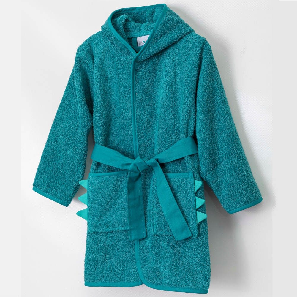 <p>Μπουρνούζι βρεφικό/παιδικό με κουκούλα, κέντημα, τρισδιάστατες λεπτομέρειες και ρέλι περιμετρικά, στις τσέπες, τη ζώνη και τα μανίκια, από ύφασμα φροτέ πενιέ, 100% βαμβακερό, μονόχρωμο, πετρόλ, σχέδιο δεινόσαυρος.</p>