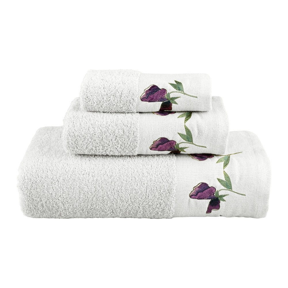 <p>Σετ πετσέτες 3 τεμαχίων, μπάνιου, προσώπου και χειρός, από ύφασμα φροτέ, πενιέ, 100% βαμβακερό, με κέντημα.Διατίθεται σε 4 χρώματα.</p>