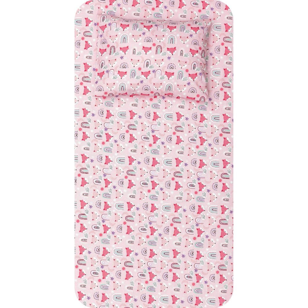 <p>Σετ σεντόνια κούνιας με μαξιλαροθήκη από ύφασμα μερσεριζέ, 160 κλωστών, 100% βαμβακερό, εμπριμέ, σε χρώμα ροζ, σχέδιο αλεπού.</p>