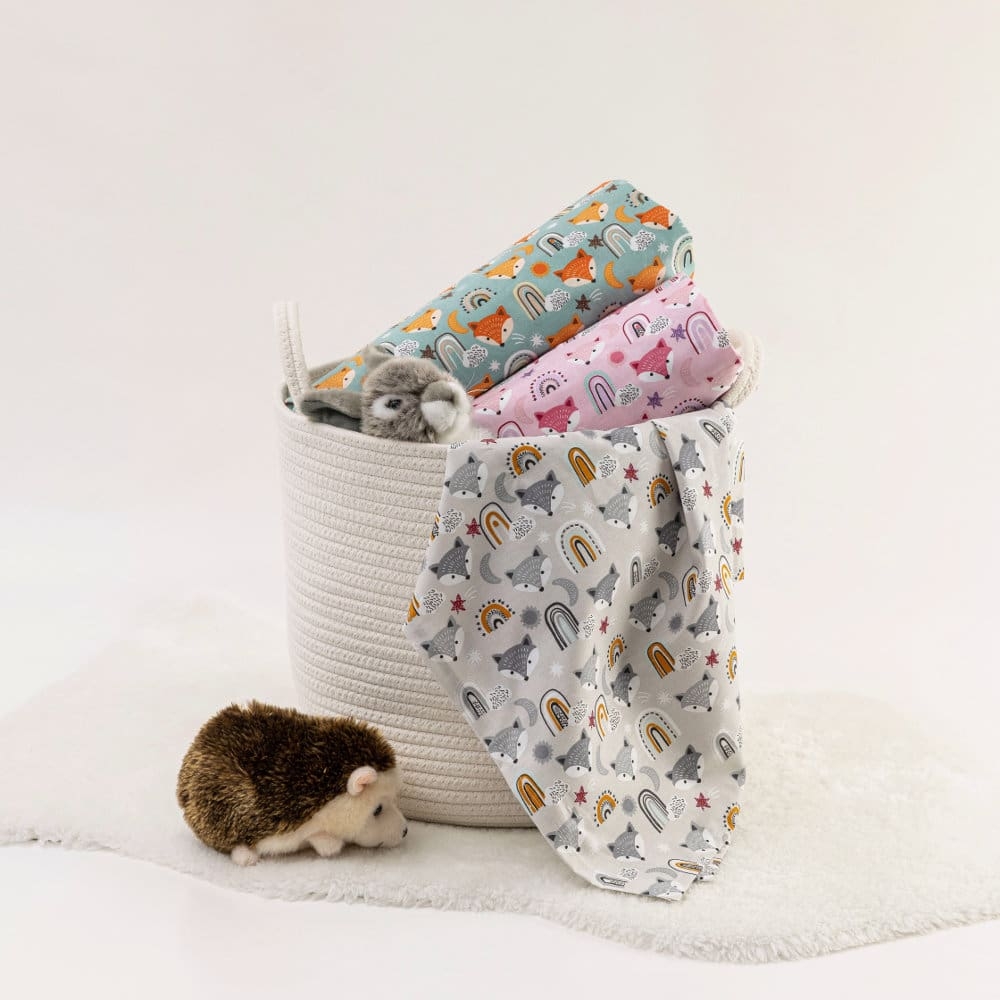 <p>Σετ 2 σεντόνια λίκνου (ιδίου χρώματος) από ύφασμα μερσεριζέ, 160 κλωστών, 100% βαμβακερό, εμπριμέ, σχέδιο αλεπού.</p>