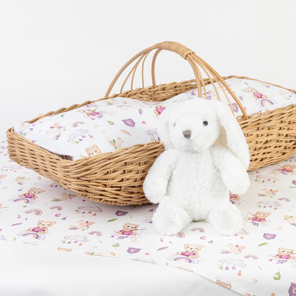 <p>Σετ 2 σεντόνια λίκνου (ιδίου χρώματος) από ύφασμα μερσεριζέ, 160 κλωστών, 100% βαμβακερό, εμπριμέ, σχέδιο με αρκουδάκια. Διατίθεται σε 2 χρώματα.</p>