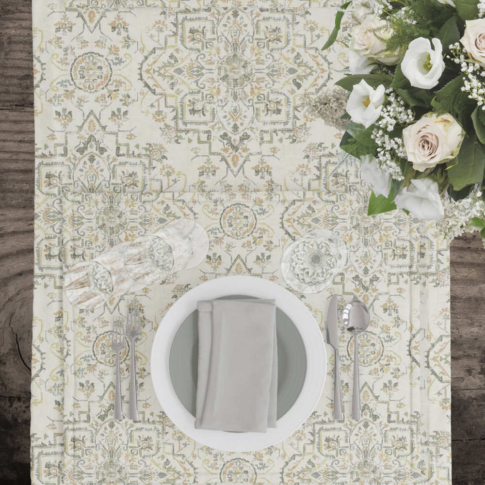 <p>Τραπεζομάντηλο από ύφασμα λονέτα 50% βαμβακερό-50% πολυέστερ, εμπριμέ, με damask σχέδιο.</p>