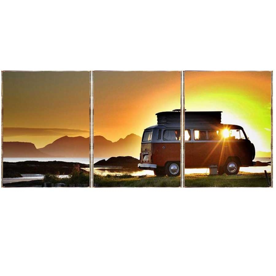 Car sunset τρίπτυχος πίνακας χειροποίητος