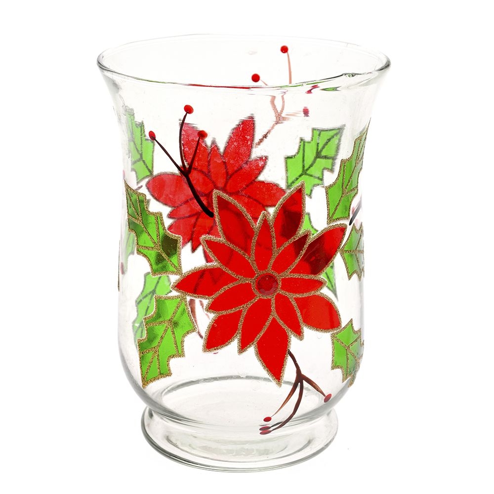 Διαφανές γυάλινο κηροπήγιο χριστουγεννιάτικο με γκι 10.5x14.5 εκ