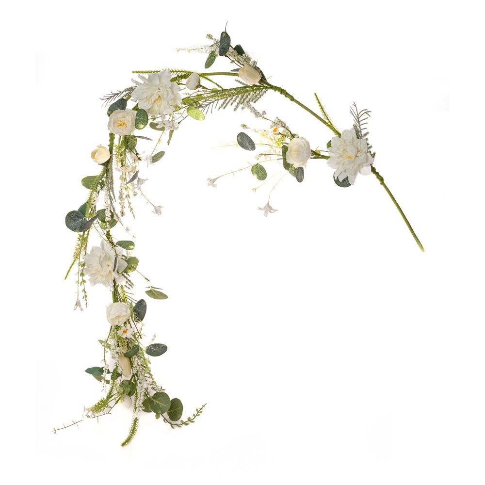 Διακοσμητικό κρεμαστό κλαδί με λευκές ντάλιες και πράσινα φύλλα 150 εκ