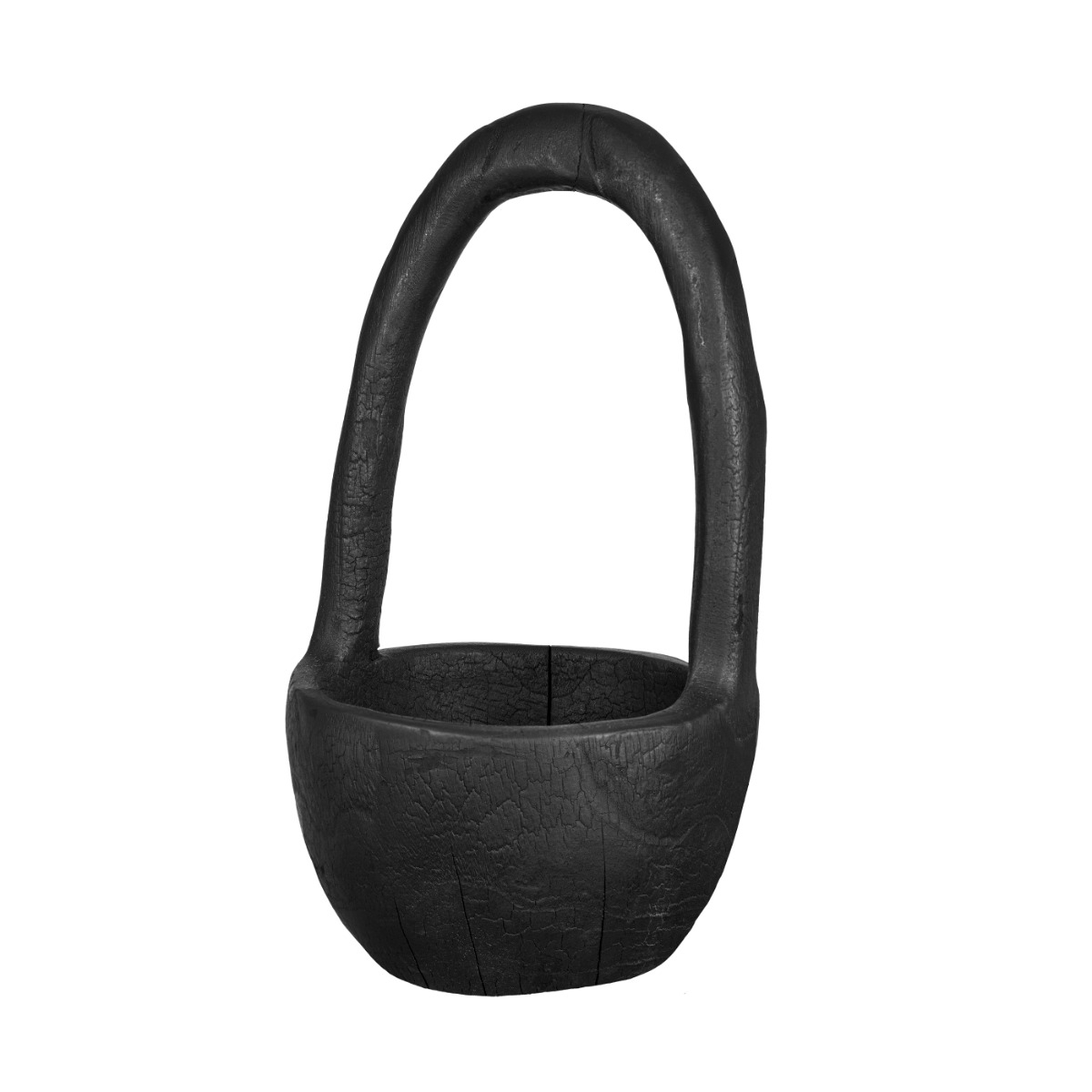 Διακοσμητικό μπωλ από ξύλο teak σε μαύρη απόχρωση με λαβή 22x33 εκ