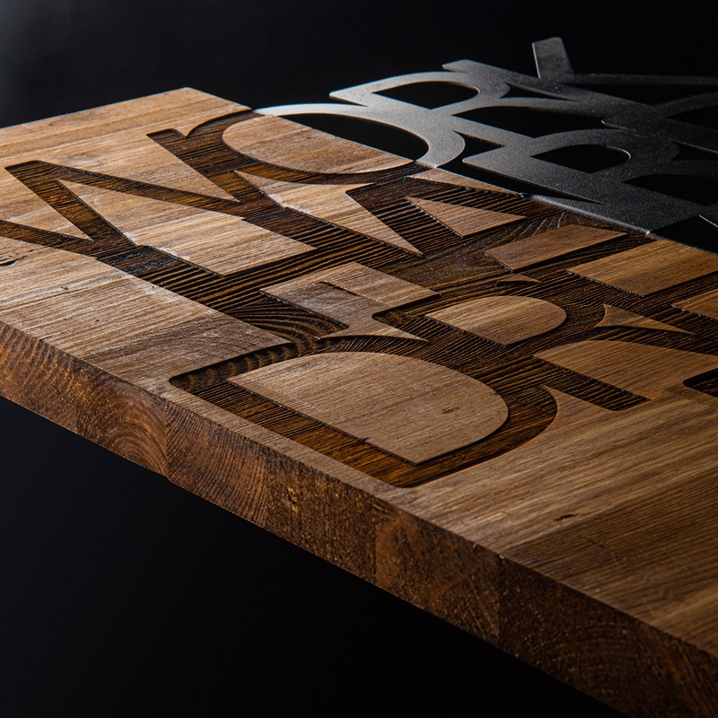 <li>Κατασκευασμένο από ξύλο πεύκου υψηλής ποιότητας (3cm) με την έκφραση να είναι κατασκευασμένο από μέταλλο σε μαύρο χρώμα (1.2mm).</li>