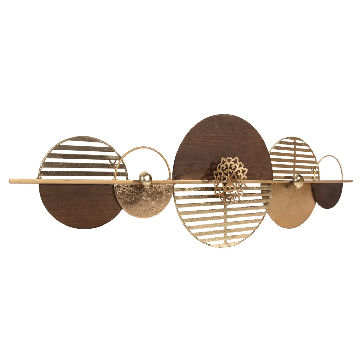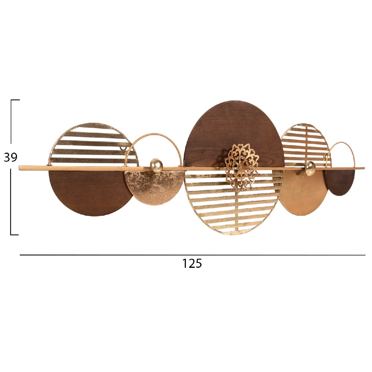 Εάν θέλετε να διακοσμήσετε τον τοίχο σας με έναν εναλλακτικό τρόπο σε σχέση με έναν αληθινό πίνακα, τότε μην διστάσετε να τοποθετήσετε αυτό το μεταλλικό διακοσμητικό τοίχου. Αποτελείται από μεταλλικά κυκλικά σχήματα σε ΚΑΦΕ και ΧΡΥΣΟ χρώμα. Μπορείτε όμως να φανταστείτε την χρησιμότητά τέτοιων διακοσμητικών; <br />