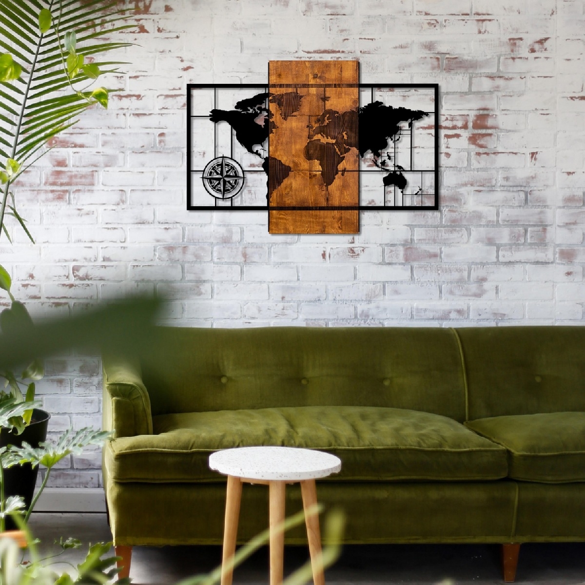 Το σχέδιο της είναι ένας παγκόσμιος χάρτης σε μαύρη απόχρωση, το κεντρικό σημείο του οποίου βρίσκεται πάνω σε ξύλο φυσικής απόχρωσης. <br />