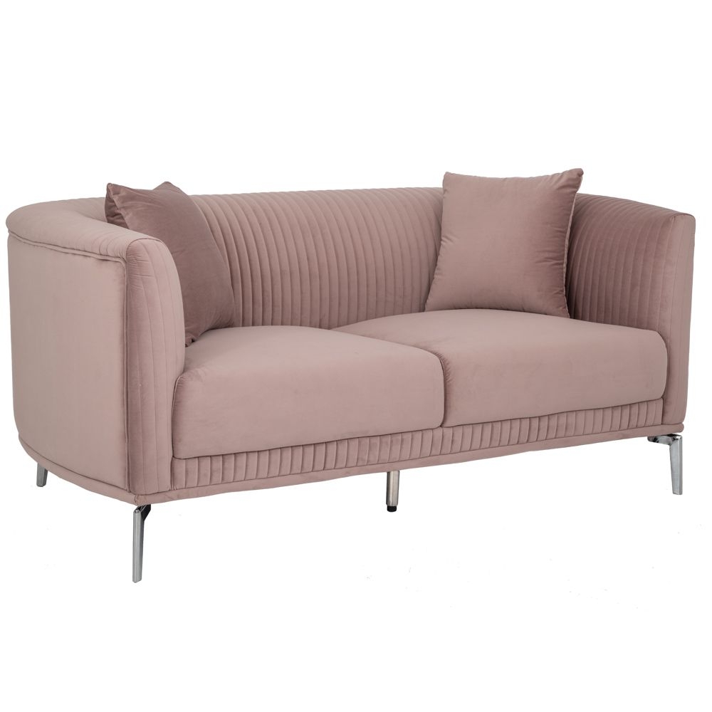 Διθέσιος καναπές με βελούδινη επένδυση σε απόχρωση σάπιο μήλο και μεταλλικά ασημί ποδαράκια 170x96x73 εκ
