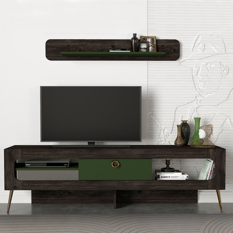 Έπιπλο τηλεόρασης Miladra Megapap από μελαμίνη χρώμα μαύρο rebab - λαδί 180x31x55εκ.<br></span>
