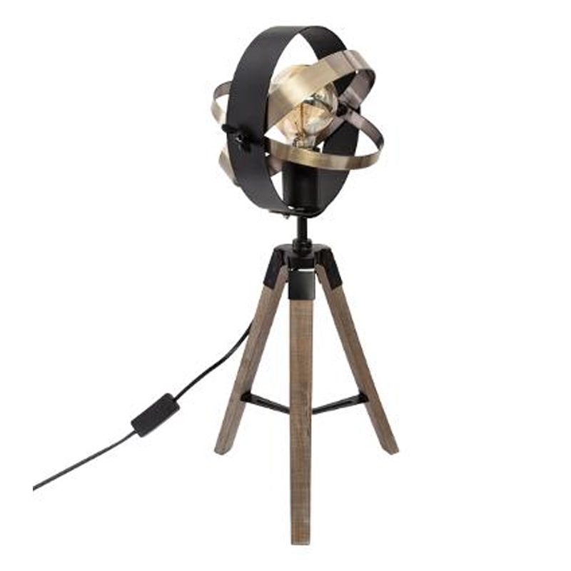 <p>Τεχνικά χαρακτηριστικά:<br />*Χρώμα: Φυσικό – μαύρο – χρυσό<br />*Υλικό : Ξύλινη βάση – με μεταλλικούς συνδέσμους. Καπέλο κατασκευασμένο από μέταλλο<br />*Φέρει θέση για έναν λαμπτήρα Ε27 (max 25W) ο οποίος δεν συμπεριλαμβάνεται στη συσκευασία.<br />* Καλώδιο μήκος 1,50 εκ<br />*Φέρει διακόπτη on/off</p>