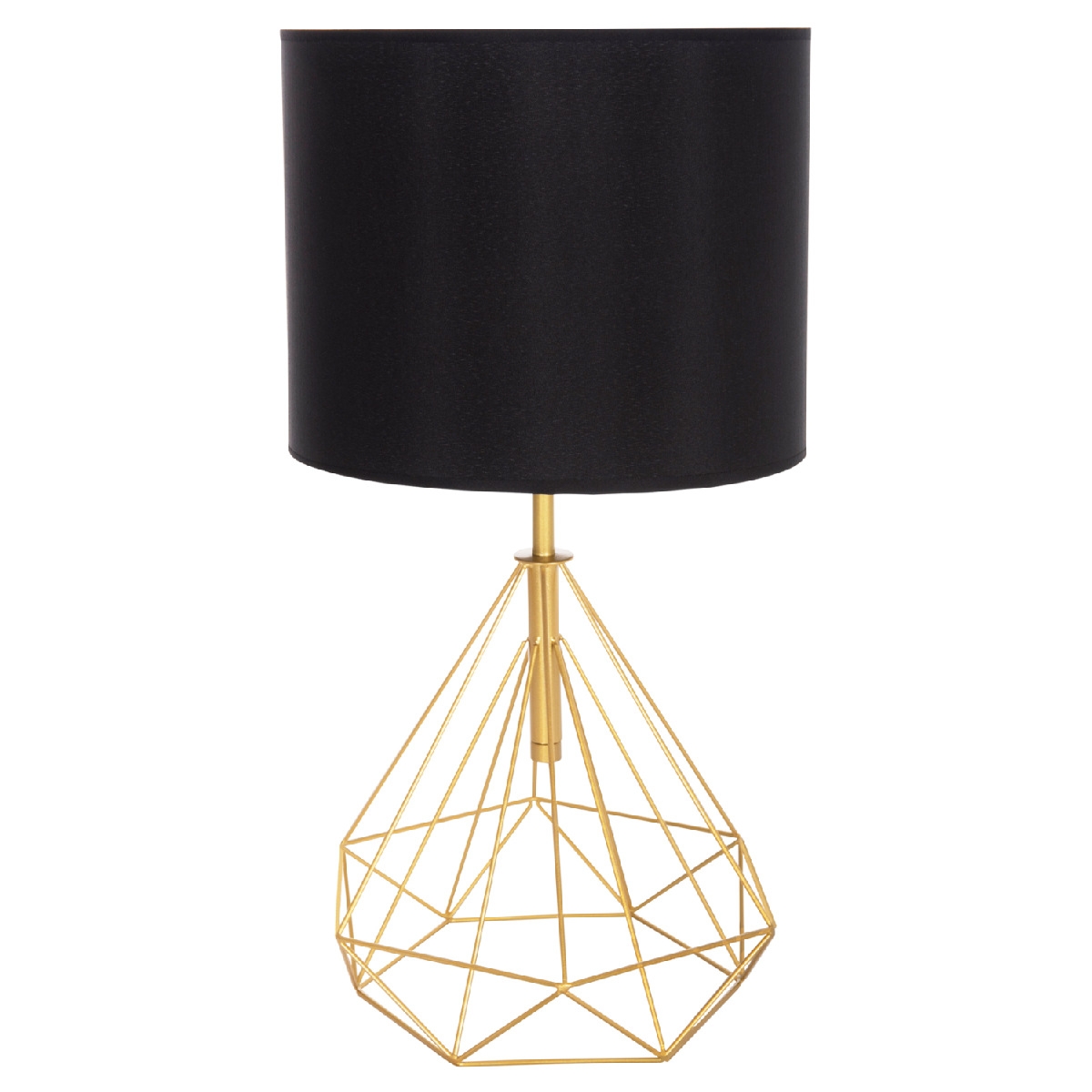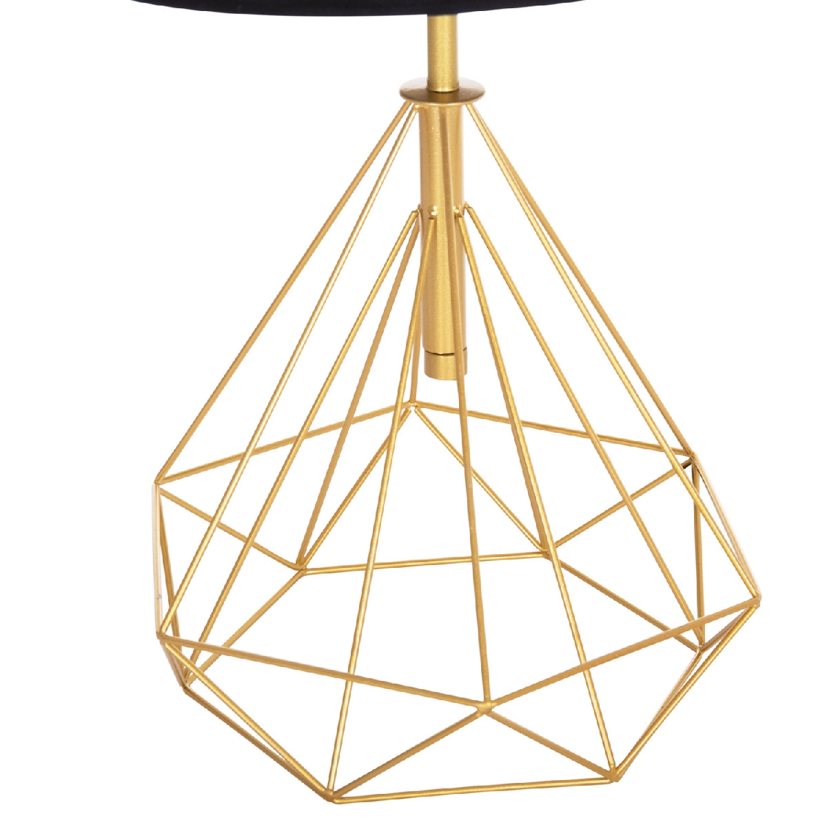 Φινέτσα και μοντέρνα γραμμή συναντώνται σε αυτό το επιτραπέζιο φωτιστικό. Βάση και κολώνα έχουν δώσει την θέση τους όμορφα σε ένα ΧΡΥΣΟ μεταλλικό πλέγμα σε σχήμα πολύγωνης πυραμίδας και στην κορυφή του κάθεται το μαύρο κυλινδρικό καπέλο, δημιουργώντας ένα σύνολο που είναι η επιτομή του μοντέρνου design εσωτερικών χώρων. Ειδικά, το μαύρο χρώμα του τυμπάνου πραγματικά δίνει την εντύπωση της πολυτέλειας χωρίς όριο. Αυτό το φωτιστικό είναι λιτό, κομψό και βολικό σε διαστάσεις παρέχοντας αμέτρητες δυνατότητες «δεσίματος» με την υπόλοιπη διακόσμησή σας. Εκτός από διάφορα δωμάτια του σπιτιού σας, μπορεί, επίσης, να ταιριάξει και σε επαγγελματικούς χώρους όπως εστιατόρια, καφέ, ξενοδοχεία κτλ.<br />