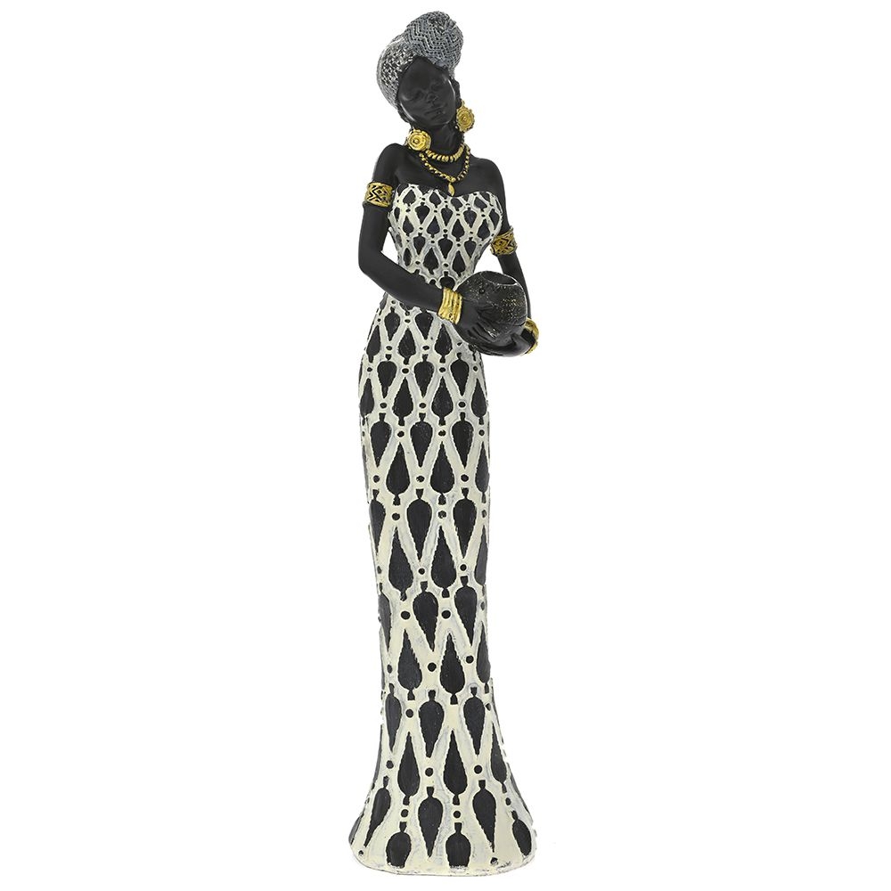 Φιγούρα από πολυρεζίνη Αφρικανής γυναίκας με ασπρόμαυρο φόρεμα 8x7x34 εκ