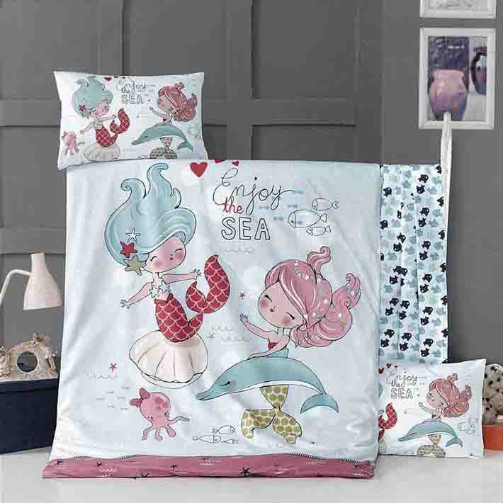 Fish girl σετ σεντόνια βρεφικά 3 τεμαχίων