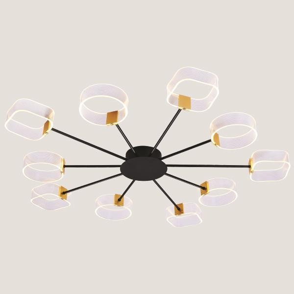 <p><span style="font-size:14px"><span style="font-family:verdana,geneva,sans-serif">Φωτιστικό οροφής πλαφονιέρα δεκάφωτο κατασκευασμένο από μέταλλο, ακρυλικό και αλουμίνιο σε συνδυασμό χρωμάτων μαύρο-χρυσό. </span></span><span style="font-family:verdana,geneva,sans-serif; font-size:14px">Με μοντέρνο στυλ και απλή γραμμή εξασφαλίζει άπλετο φωτισμό στο χώρο σας.</span><span style="font-size:14px"><span style="font-family:verdana,geneva,sans-serif"> Διαθέτει ενσωματωμένο LED με ισχύ 100W και απόδοση 7500 Lumen σε θερμό λευκό χρώμα 3000Κ.</span></span></p>
