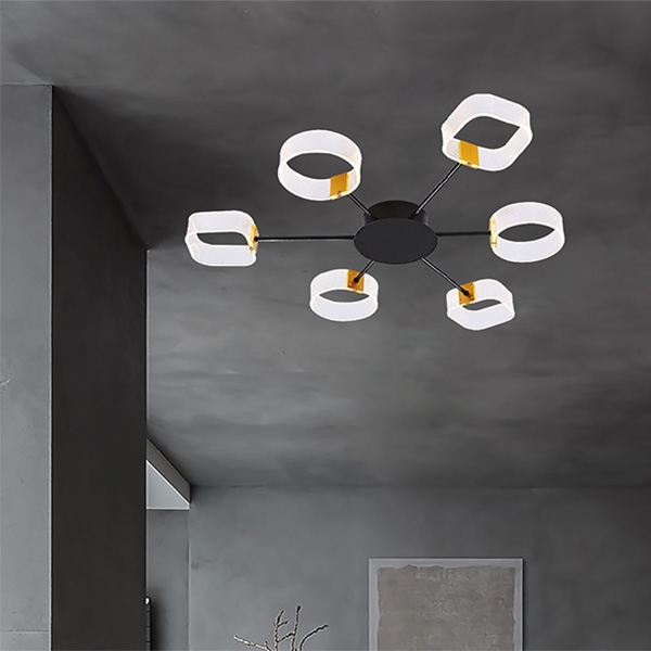<p><span style="font-size:14px"><span style="font-family:verdana,geneva,sans-serif">Φωτιστικό οροφής πλαφονιέρα εξάφωτο κατασκευασμένο από μέταλλο, ακρυλικό και αλουμίνιο σε συνδυασμό χρωμάτων μαύρο-χρυσό. </span></span><span style="font-family:verdana,geneva,sans-serif; font-size:14px">Με μοντέρνο στυλ και απλή γραμμή εξασφαλίζει άπλετο φωτισμό στο χώρο σας.</span><span style="font-size:14px"><span style="font-family:verdana,geneva,sans-serif"> Διαθέτει ενσωματωμένο LED με ισχύ 60W και απόδοση 4500 Lumen σε θερμό λευκό χρώμα 3000Κ.</span></span></p>