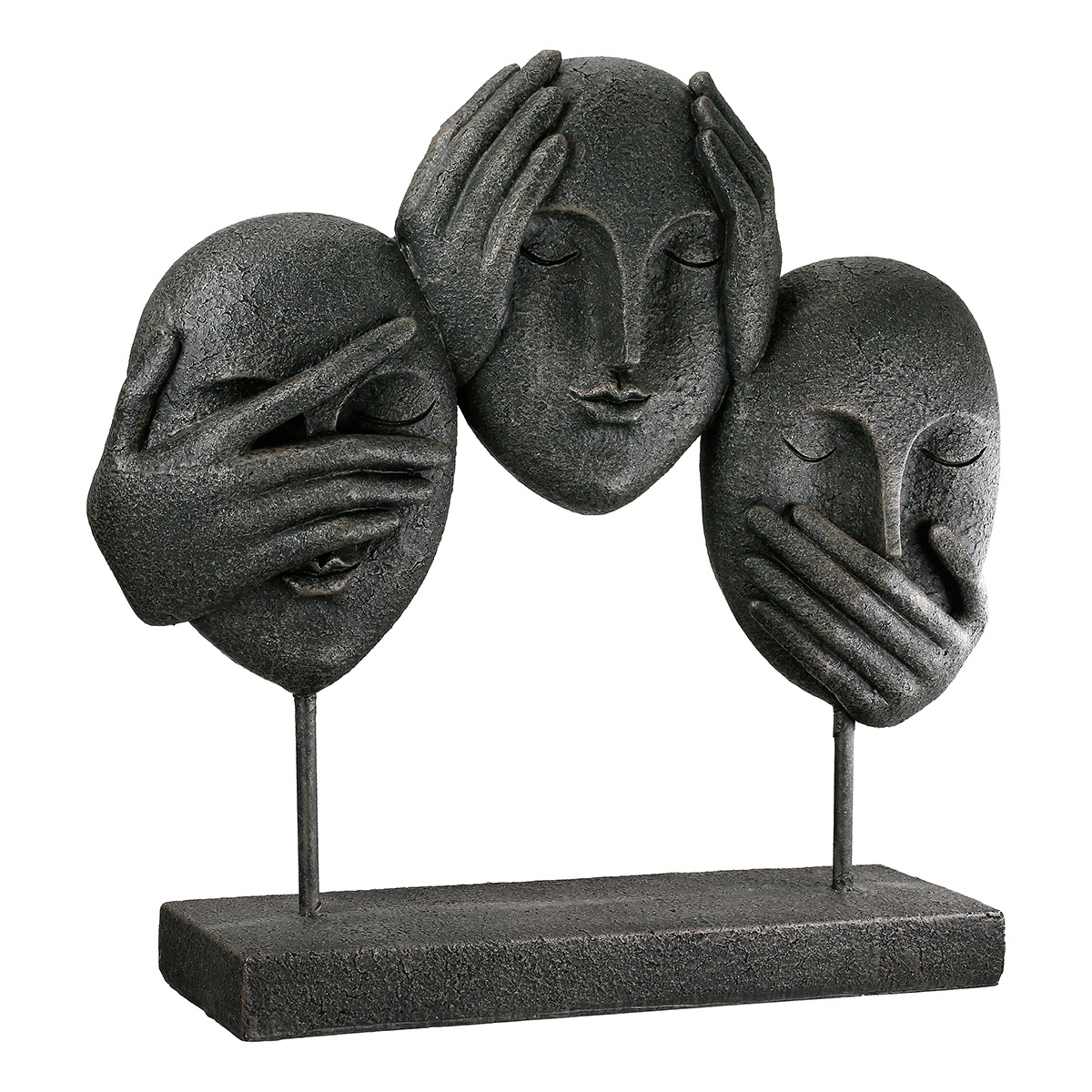<p>Το Γλυπτό Πρόσωπο '3 Faces' προσθέτει μια καλλιτεχνική και μυστηριώδη αίσθηση στη διακόσμηση του χώρου σας. Κατασκευασμένο από πολυρεζίνη σε μαύρη απόχρωση, αυτό το γλυπτό απεικονίζει τρία πρόσωπα σε διαφορετικές εκφράσεις, προσφέροντας μια αίσθηση κομψότητας και πρωτοτυπίας. Οι διαστάσεις του 8.5x30x29.5cm το καθιστούν ιδανικό για τοποθέτηση σε ράφια ή τραπέζια, προσφέροντας μια αίσθηση τέχνης και εκλέπτυνσης. Ιδανικό για όσους αγαπούν την τέχνη και την μοναδική διακόσμηση.</p><br/><br/><p>Γλυπτό Πρόσωπο</p>