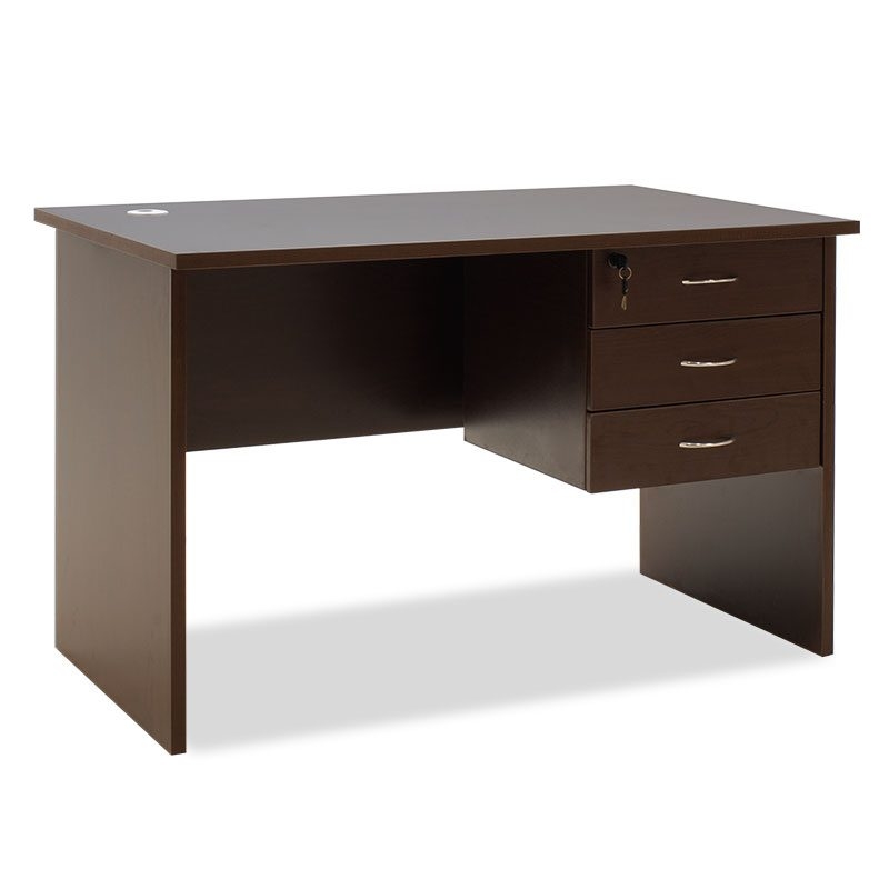 <p>Τεχνικά χαρακτηριστικά:<br /> *Επιφάνεια κατασκευασμένη από μοριοσανίδα υψηλής ποιότητας με επένδυση μελαμίνης, πάχους 20 χιλ. Τα πλαϊνά μέρη είναι 20 χιλ, όλα στον χρωματισμό του καρυδί.<br /> * Φέρει τρία συρτάρια<br />* Συνδυάζεται αρμονικά με τα υπόλοιπα είδη της σειράς: Βιβλιοθήκες, ντουλάπια, συρταριέρες και τραπεζάκι επισκέπτη.</p>