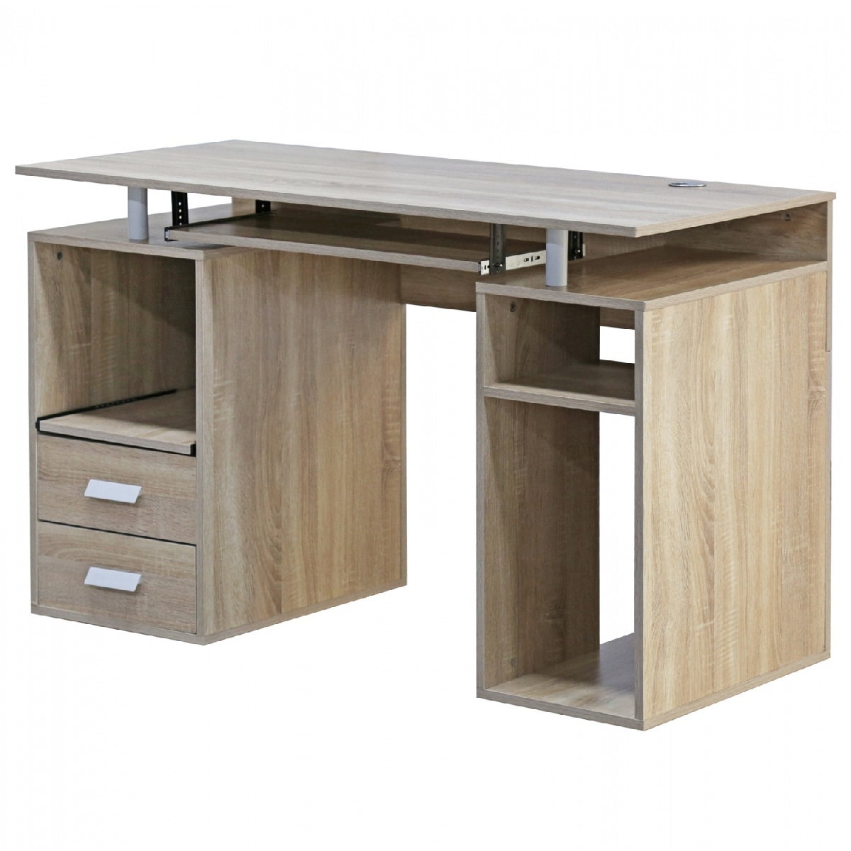 Το ΗΜ2026.02 είναι μια σύνθεση που διαθέτει δύο συρτάρια χαμηλά αριστερά και μια βολική συρταρωτή επιφάνεια ακριβώς επάνω από τα συρτάρια με αρκετό ύψος. Στο κέντρο και κάτω από την επιφάνεια του γραφείου υπάρχει μια συρταρωτή, επίσης, θέση για πληκτρολόγιο με δύο ανοικτούς αποθηκευτικούς χώρους δεξιά και αριστερά. Στην δεξιά κάτω πλευρά υπάρχει έτοιμη βάση για ηλεκτρονικό υπολογιστή με ανοιχτό το πίσω μέρος για την εύκολη σύνδεση των καλωδίων. Με λίγα λόγια, αυτό το έπιπλο καλύπτει όλες τις βασικές ανάγκες ενός σύγχρονου γραφείου.<br />