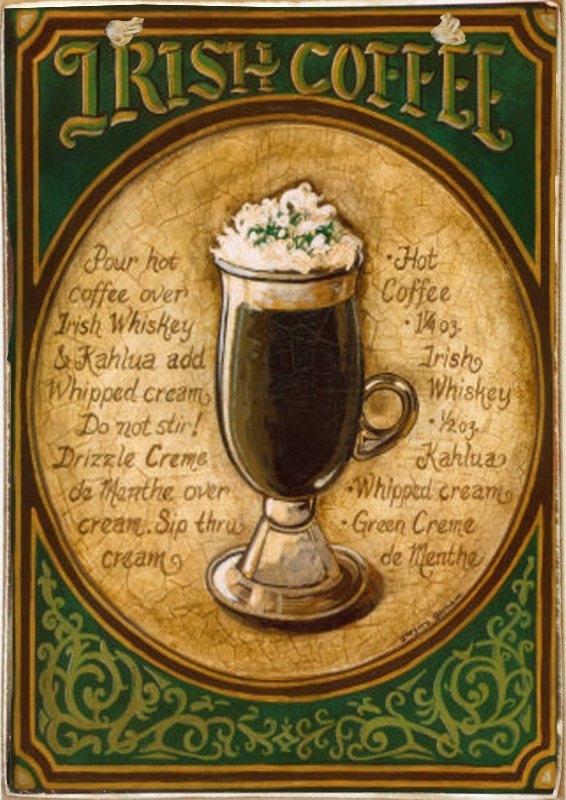 Irish coffee ξύλινος πίνακας χειροποίητος