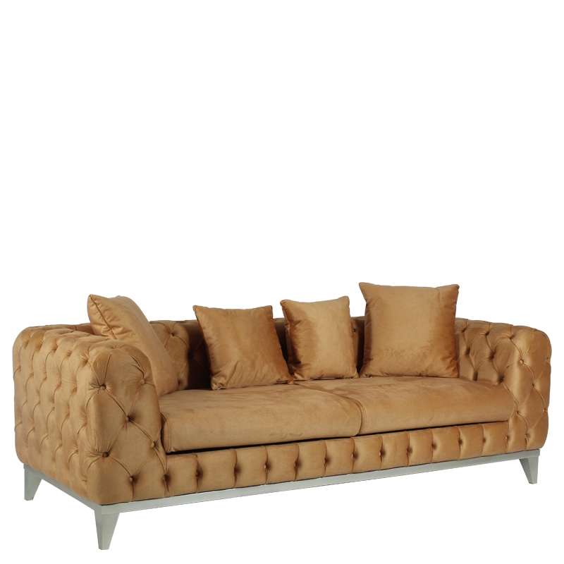 Καναπές jaguar τριθέσιος βελούδινος σε μπεζ απόχρωση με μεταλλικά πόδια σε χρυσή απόχρωση 225x92x68 εκ