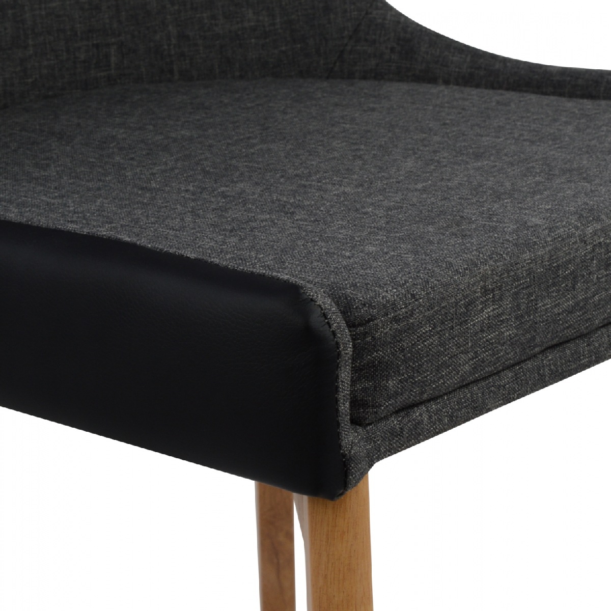 Η κατασκευή της καρέκλας είναι από μέταλλο ενώ το κάθισμα της είναι επενδυμένο με ύφασμα σε γκρι απόχρωση εμπρός και μαύρο τεχνόδερμα υψηλής ποιότητας στο πίσω μέρος της πλάτης και του καθίσματος. Τα πόδια είναι μεταλλικά, βαμμένα έτσι ώστε να αποδίδουν την όψη του ξύλου.<br />