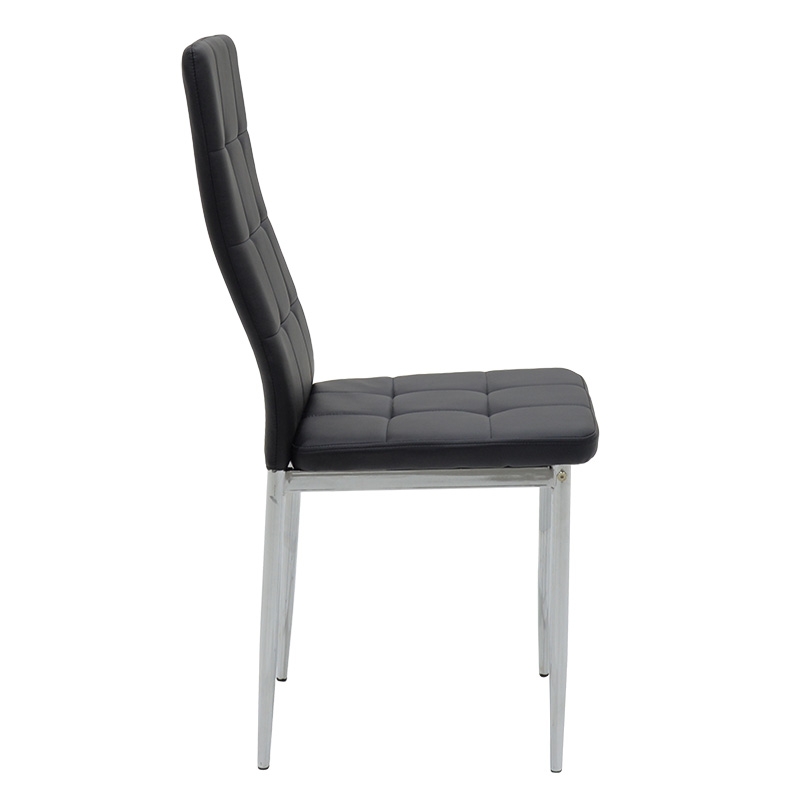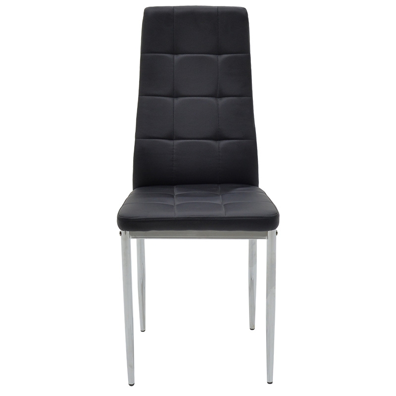 <p><img src="https://www.pakoworld.com/various_images/tools_small.png" style="border-width: 0px; border-style: solid; margin-left: 3px; margin-right: 3px; float: left; height: 35px; width: 35px;" valign="center" alt="Οδηγίες συναρμολόγησης" title="Οδηγίες συναρμολόγησης"><br /><br /><a href="/products_pdf/pakketo_127-000109.pdf" target="_blank">Πατήστε εδώ</a> για να κατεβάσετε τις Οδηγίες Συναρμολόγησης του Προϊόντος.</p><hr style="color:#bdc3c7">Καρέκλα Cube pakoworld PU μαύρο-πόδι χρωμίου<br><br>Οι κλασσικές καπιτονέ γραμμές που συνθέτουν αυτό το κάθισμα αναδύουν πολυτέλεια, κομψότητα και υψηλή αισθητική.<br>Ένα μοντέλο που σχεδιάστηκε με εργονομία, αντοχή και άνεση στο κάθισμα.<br>Ιδανικό για την ανανέωση της διακόσμησης του καθιστικού, της τραπεζαρίας.<br> <br>Τεχνικά χαρακτηριστικά:<br>* Πλάτη και έδρα κατασκευασμένες από ενισχυμένο σκελετό και επενδυμένες με τεχνόδερμα PU υψηλής ποιότητας που παρέχει ανθεκτικότητα αλλά και την δυνατότητα του εύκολου καθαρισμού. Προσφέρεται σε μαύρο χρώμα.<br>* Ο σχεδιασμός πλάτης ακολουθεί την σπονδυλική στήλη, στηρίζοντας τη μέση με τη μοντέρνα ελαφρώς καμπύλη μορφή της. <br>* Η πλάτη και η έδρα φέρουν καπιτονέ ενισχυμένες ραφές που προσδίδουν μία δόση πολυτέλειας στο τελικό σύνολο.<br>* Στήριξη σε μεταλλικό επιχρωμιωμένο σκελετό που καταλήγει σε 4 ενισχυμένα πόδια, εξαιρετικής ποιότητας και αντοχής, τόσο στο βάρος όσο και στο χρόνο.<br>* Οι καταλήξεις των ποδιών διαθέτουν προστατευτικά πλαστικά καλύμματα για την προστασία του πατώματος από ανεπιθύμητες φθορές.<br><br>Διαστάσεις προϊόντος:<br>Μήκος: 41 εκ<br>Πλάτος: 46 εκ<br>Ύψος: 97 εκ<br>Ύψος έδρας: 47 εκ<br><br>Παρατηρήσεις: <br>Το προϊόν παραδίδεται αμοντάριστο στην εργοστασιακή του συσκευασία και συνοδεύεται με αναλυτικό οδηγό συναρμολόγησης. <br>Η χρωματική απόχρωση του προϊόντος ενδέχεται να διαφέρει ελαφρώς σε σχέση με την φωτογραφική απεικόνισή του στην οθόνη σας. <br>