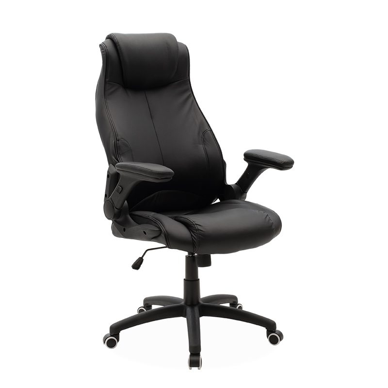 <p>Τεχνικές προδιαγραφές:<br />* Μηχανισμός Tilt / Ανακλινόμενη πλάτη: Το κάθισμα ακολουθεί την κλίση του σώματος μπρος – πίσω, προσφέροντας πλήρη ελευθερία κινήσεων, αλλά και εργονομική στήριξη της μέσης και της σπονδυλικής στήλης. Ο μηχανισμός μπορεί να ασφαλίσει στην κάθετη στάση.<br />* Ρυθμιζόμενο ύψος: Δυνατότητα να προσαρμόζεται και να “κλειδώνει” το κάθισμα στην κατάλληλη εργονομική θέση, ανάλογα με το ύψος του χρήστη. Σύμφωνα με την εργονομία τα πόδια πρέπει να σχηματίζουν ορθή γωνία 90 μοιρών με το πάτωμα.<br />* Ανθεκτικός μεταλλικός σκελετός: Έδραση σε τροχήλατη πεντακτινωτή PP βάση υψηλών αντοχών. Δυνατότητα εύκολης περιστροφής και μετακίνησης προς κάθε κατεύθυνση.<br />* Τεχνόδερμα Pu: Επένδυση με τεχνόδερμα υψηλής ποιότητας που παρέχει ανθεκτικότητα στον χρόνο αλλά και την δυνατότητα του εύκολου καθαρισμού. Προσφέρεται σε μοντέρνο μαύρο χρώμα.<br />* Σχεδιασμός ψηλής πλάτης που ακολουθεί την σπονδυλική στήλη για μεγαλύτερη ανατομία. Τα ενισχυμένα μαξιλάρια προσφέρουν μία εξτρά αίσθηση πολυτέλειας.<br />* Καμπύλο μπράτσο που ακολουθεί την κλίση των χεριών, ενισχυμένο με τεχνόδερμα για μεγαλύτερη άνεση. Το μπράτσο μπορεί να ανακλιθεί όρθιο, ώστε να πλησιάζει περισσότερο το γραφείο όταν δε χρησιμοποιείται.<br />* Ενισχυμένη μπουκάλα στήριξης </p>