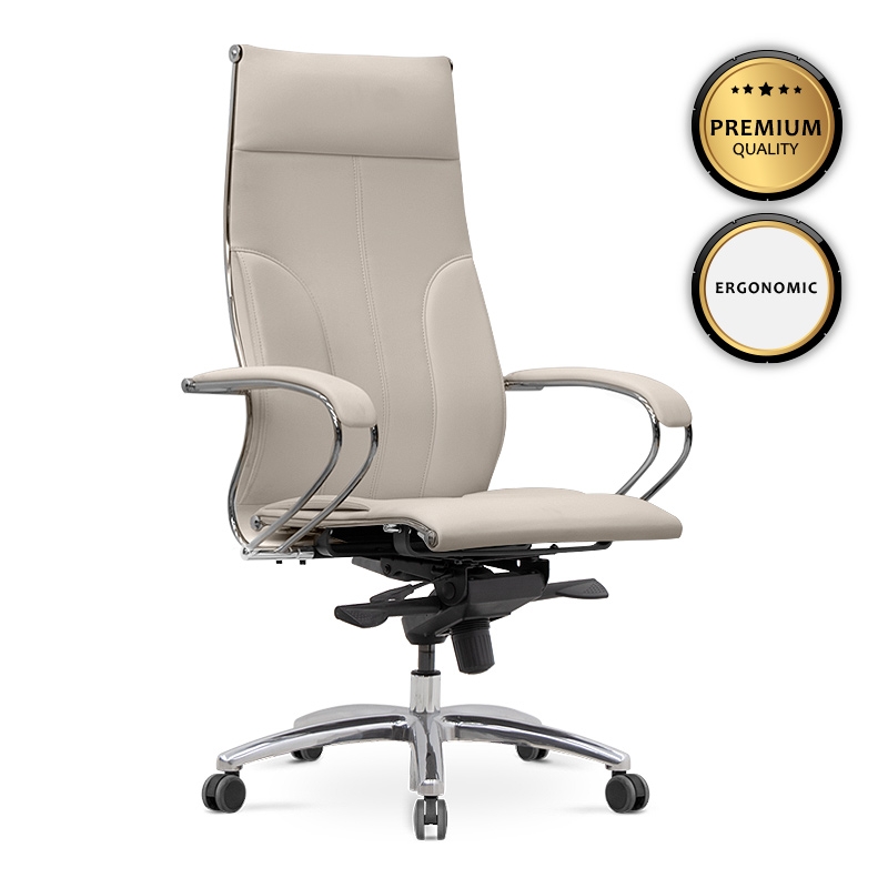Καρέκλα γραφείου εργονομική Samurai-6 Megapap από τεχνόδερμα σε ανοιχτό μπεζ 70x70x123/130εκ.