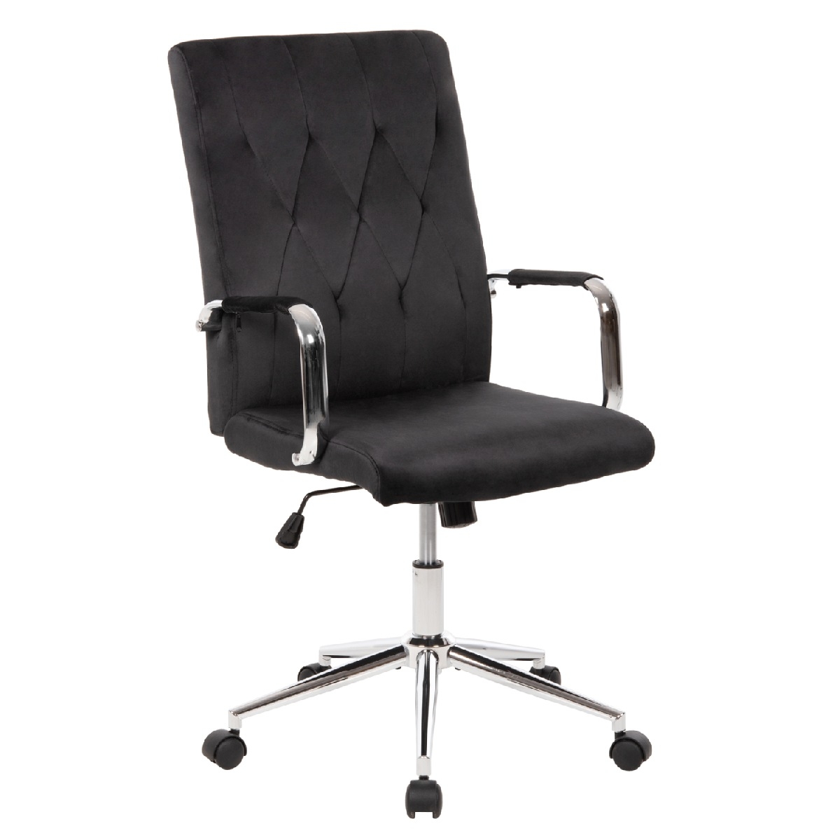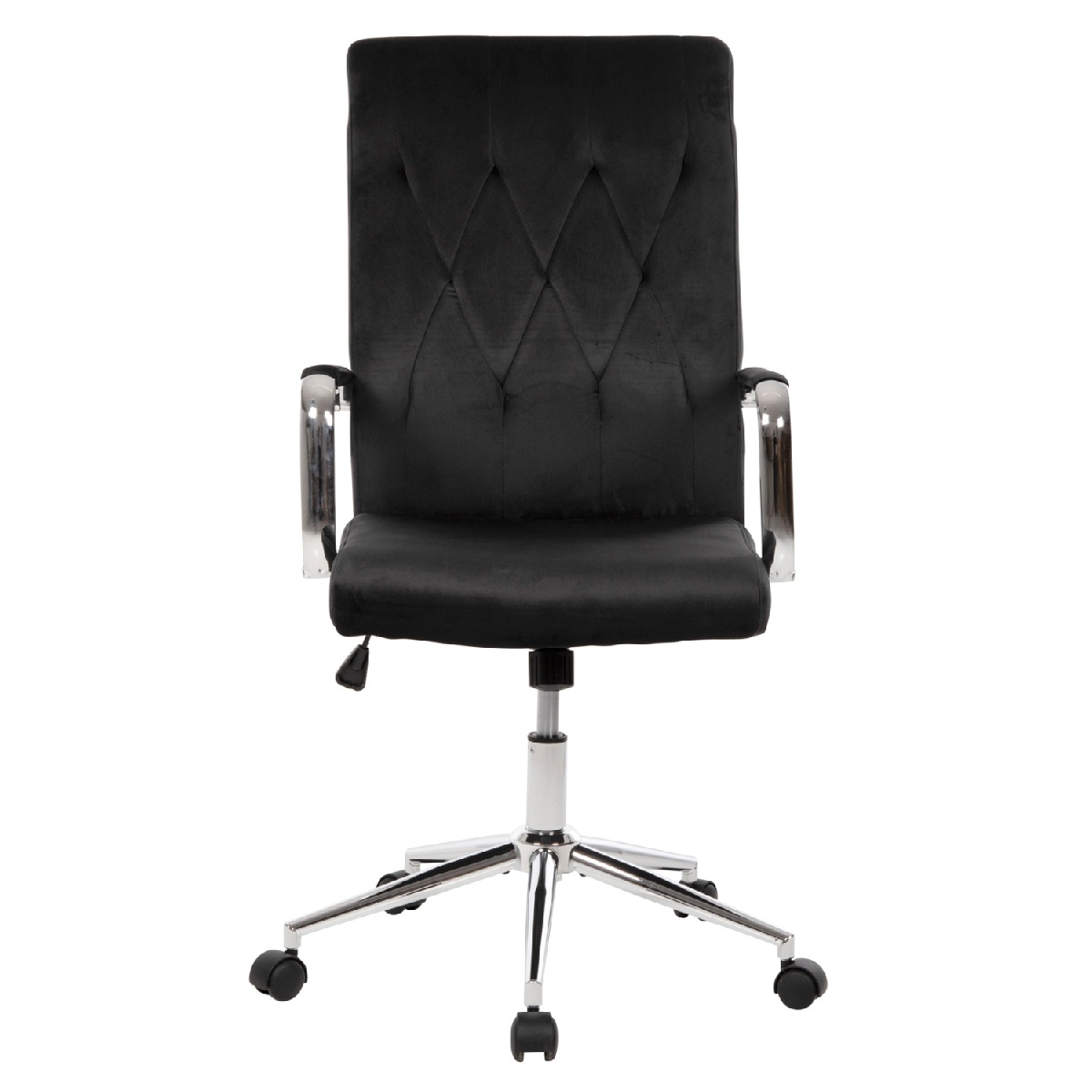 Διευθυντική καρέκλα γραφείου “JOSEF” σε ΜΑΥΡΟ χρώμα. Μια όμορφη καρέκλα γραφείου με ψηλά επίπεδα inox μπράτσα με στρογγυλεμένες γωνίες, επενδυμένα με βελούδινο ύφασμα. Η πλάτη είναι άνετη και ψηλή με «μαξιλάρι» από αφρώδη υλικά για άνεση κατά την χρήση και υποστηρίζει ολόκληρο τον κορμό σας, ενώ είναι επενδυμένη με βελούδινο ύφασμα, όπως επίσης και το φαρδύ και αναπαυτικό κάθισμα με την αναπαυτική επιφάνεια. Η inox γυαλιστερή βάση και η ανάρτηση με την ρύθμιση ύψους προσθέτουν μια αίσθηση πολυτέλειας που είναι πάντα ευπρόσδεκτη για κάθε χώρο, ενώ ο μηχανισμός της καρέκλας με τον καλαίσθητο μεταλλικό μοχλό, προσφέρει ρύθμιση ανάκλισης, για άνετη και ευχάριστη πολύωρη χρήση! Ιδανική για επαγγελματικούς χώρους κυρίως, αλλά ακόμα και για το γραφείο σας στο σπίτι εάν περνάτε αρκετές ώρες στον υπολογιστή και θέλετε μια όμορφη και πλούσια καρέκλα γραφείου.<br />