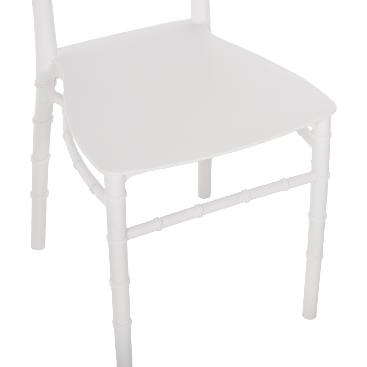 Καρέκλα TIFFANY σε λευκό χρώμα. Ιδανική πρόταση για χρήση σε επαγγελματικούς χώρους (χώροι δεξιώσεων, εταιρείες catering, κλπ.). Η καρέκλα διαθέτει λεπτομέρειες τόσο στις οριζόντιες όσο και στις κάθετες δοκούς της πλάτης, αλλά και στα πόδια. Φυσικά, μια τέτοια καρέκλα είναι και ΣΤΟΙΒΑΖΟΜΕΝΗ πράγμα που την κάνει ιδιαιτέρως πρακτική.<br />