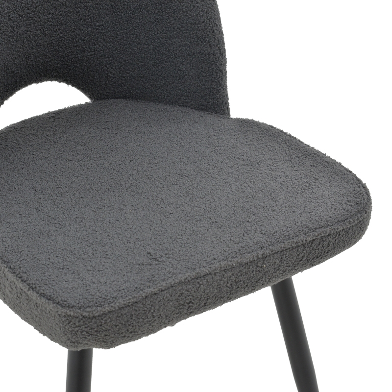 Καρέκλα Renish pakoworld μπουκλέ γκρι-μεταλλικό μαύρο πόδι 61x47x91.5εκ<br><br>Εάν ψάχνετε για ένα κάθισμα με υψηλή αισθητική και ανθετικότητα που θα ξεφεύγει από τα συνηθισμένα και να αντιπροσωπεύει το ύφος της εποχής μας, η σειρά Renish είναι εδώ.<br>Ιδανική για: Καταστήματα, καφετέριες, ξενοδοχεία, Airbnb, εκθεσιακούς χώρους καθώς και σε κάθε μοντέρνο σπίτι.<br><br>Τεχνικά χαρακτηριστικά:<br>*Πλάτη και έδρα ενιαία, κατασκευασμένες από ενισχυμένο μεταλλικό σκελετό και επενδυμένες με μπουκλέ ύφασμα υψηλής ποιότητας και αντοχής.<br>* Προσφέρεται σε γκρι-μαύρο χρώμα.<br>*Ο σχεδιασμός καμπύλης πλάτης με άνογμα στο κέντρο, που ακολουθεί την σπονδυλική στήλη, στηρίζοντας τη μέση.<br>* Η στήριξη πραγματοποιείται σε τέσσερα ενισχυμένα μεταλλικά μεγάλης ανθεκτικότητας, μαύρου χρώματος.<br>*Οι καταλήξεις των ποδιών στήριξης διαθέτουν πλαστικά καλύμματα για την προστασία του πατώματος από ανεπιθύμητες φθορές.<br><br>Διάσταση προϊόντος:<br>Μήκος: 61 εκ<br>Πλάτος: 47 εκ<br>Υψος: 91.5 εκ<br>Υψος έδρας: 51 εκ<br>Υψος πλάτης: 40 εκ<br>Βάρος αντοχής: 120 kg<br><br>Παρατηρήσεις:<br>Το προϊόν παραδίδεται αμοντάριστο, σε εργοστασιακή συσκευασία και με αναλυτικό οδηγό συναρμολόγησης.<br>Η χρωματική απόχρωση του προϊόντος ενδέχεται να διαφέρει ελαφρώς σε σχέση με την φωτογραφική απεικόνισή του στην οθόνη σας.<br><br><br>