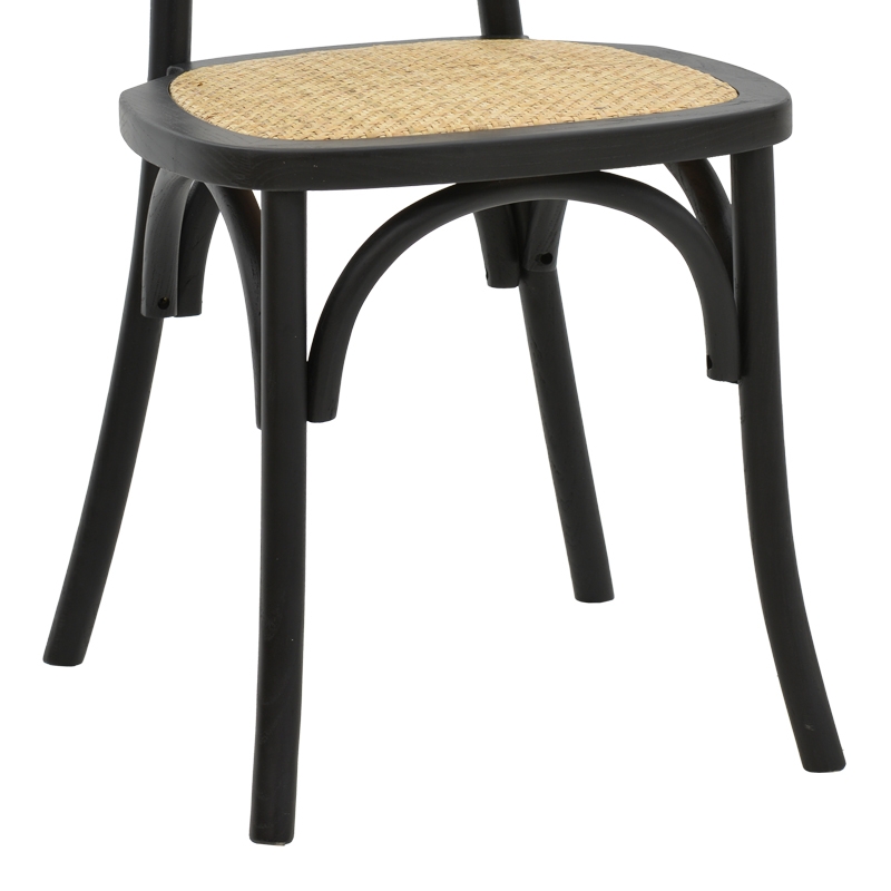 Καρέκλα στοιβαζόμενη Zoel pakoworld μαύρο ξύλο οξιάς-φυσικό rattan 45x52x82εκ<br />