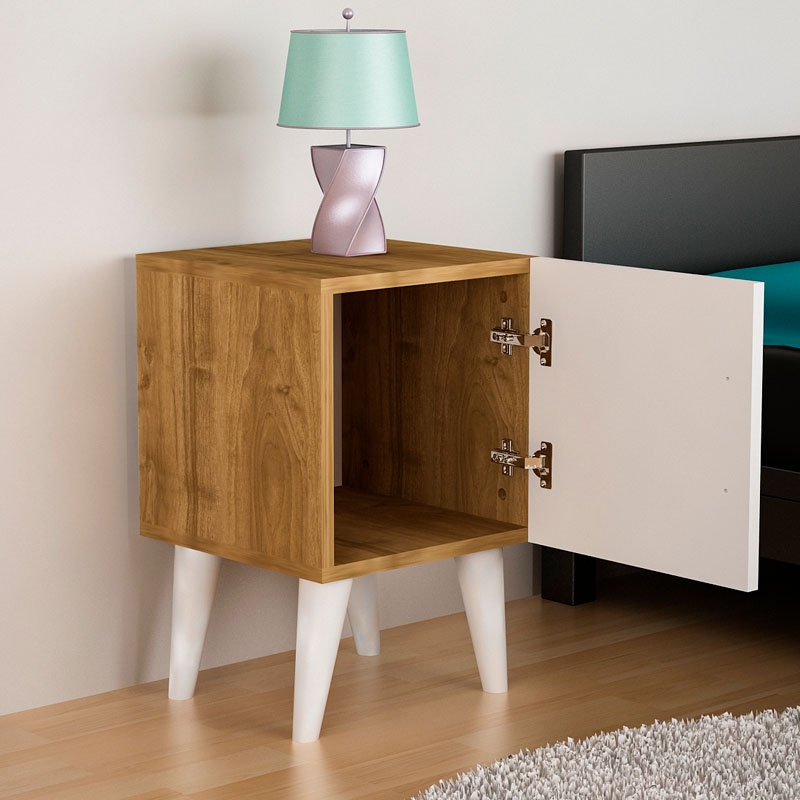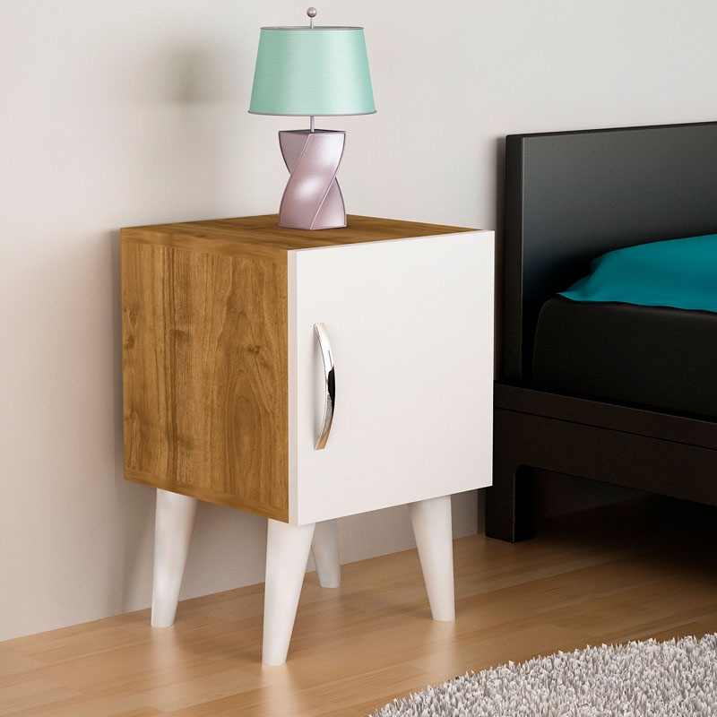 Κομοδίνο μελαμίνης Bellini Megapap χρώμα λευκό - καρυδί 35x37x55εκ.