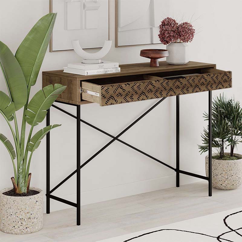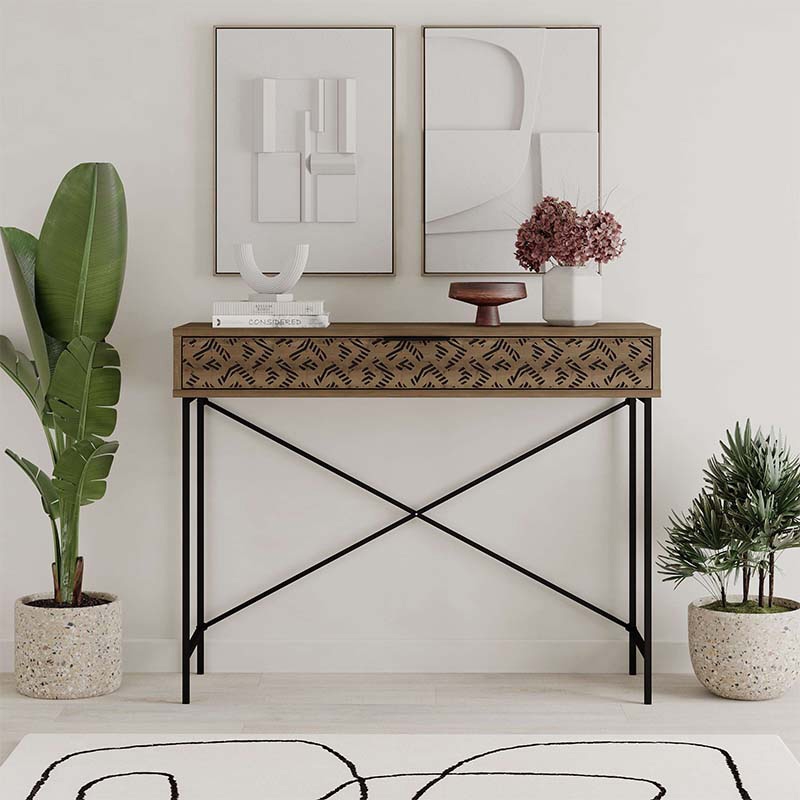 Κονσόλα Heaton Megapap μεταλλική - μελαμίνης χρώμα ανοιχτό καρυδί 110x35,6x90εκ.<br></span>