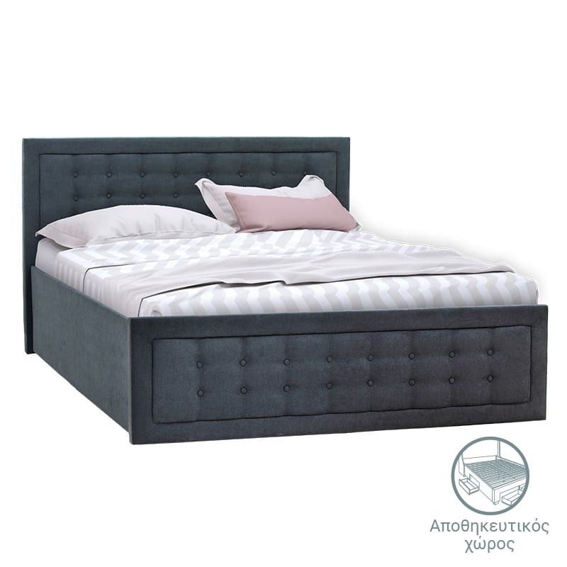 Κρεβάτι Kiev pakoworld ύφασμα ανθρακί αποθηκευτικός χώρος 160×200εκ</p>
