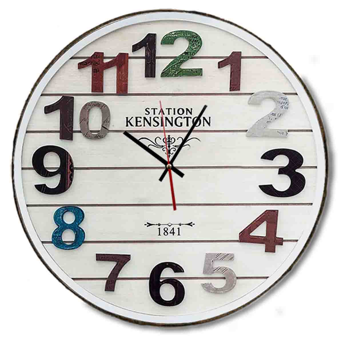 Ξύλινο χειροποίητο ρολόι τοίχου με πολύχρωμα νούμερα και λευκό deck