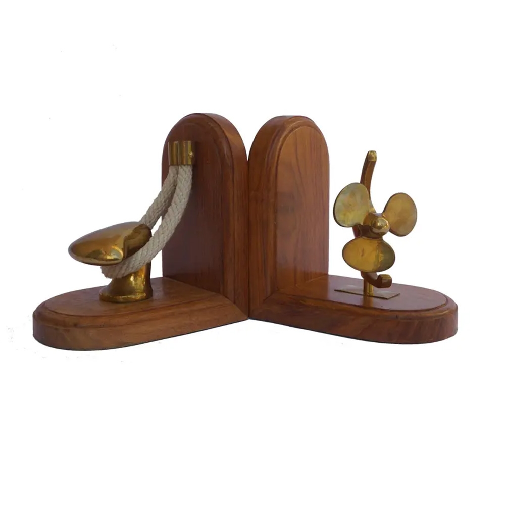 Ξύλινος βιβλιοστάτης σε φυσική απόχρωση με μεταλλική προπέλα και δέστρα πλοίου σετ δύο τεμαχίων 31x10x18 εκ