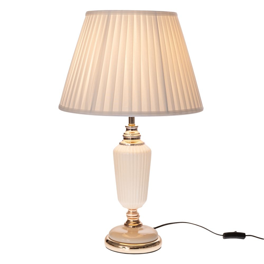 Λαμπατέρ με μεταλλικό σκελετό σε μπεζ απόχρωση με χρυσή βάση και λευκό καπέλο 16x58 εκ