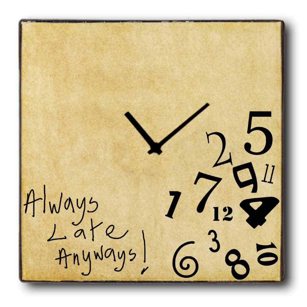 Late anyway ρολόι τοίχου ξύλινο χειροποίητο τετράγωνο