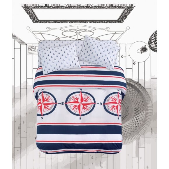Makis Tselios Home Σετ Σεντόνια King Size με λάστιχο 180×205+40cm Compass
