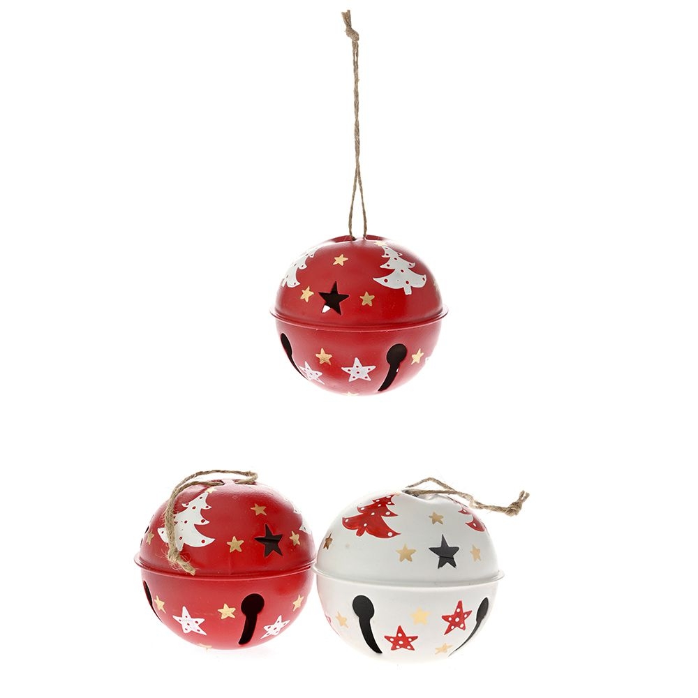 Μεταλλικά κουδουνάκια σε λευκό και κόκκινο με σχέδια σετ των έξι τεμαχίων 8 εκ
