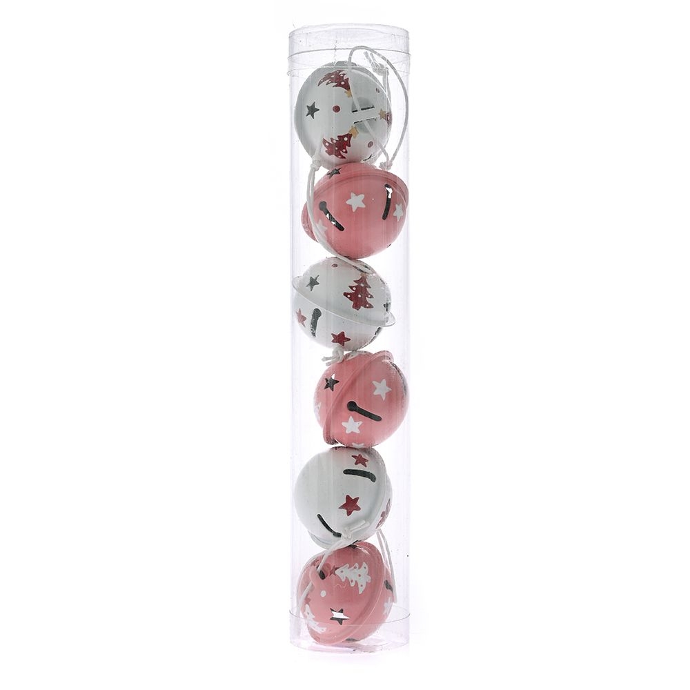 Μεταλλικά κουδουνάκια σε λευκό και ροζ χρώμα σετ των δώδεκα τεμαχίων 4 εκ