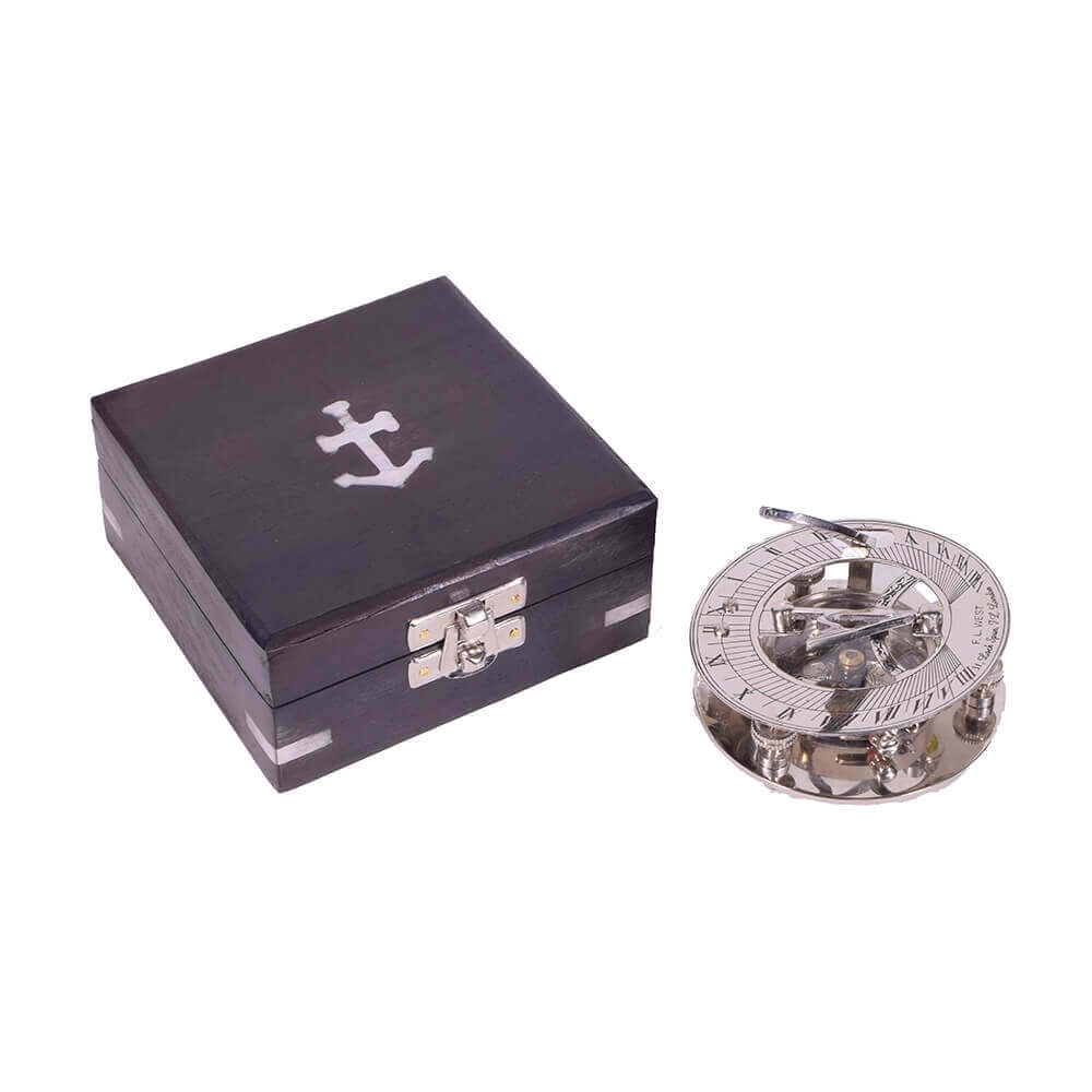 Μεταλλική ηλιακή πυξίδα νίκελ σε μαύρο ξύλινο κουτί 7.5 εκ